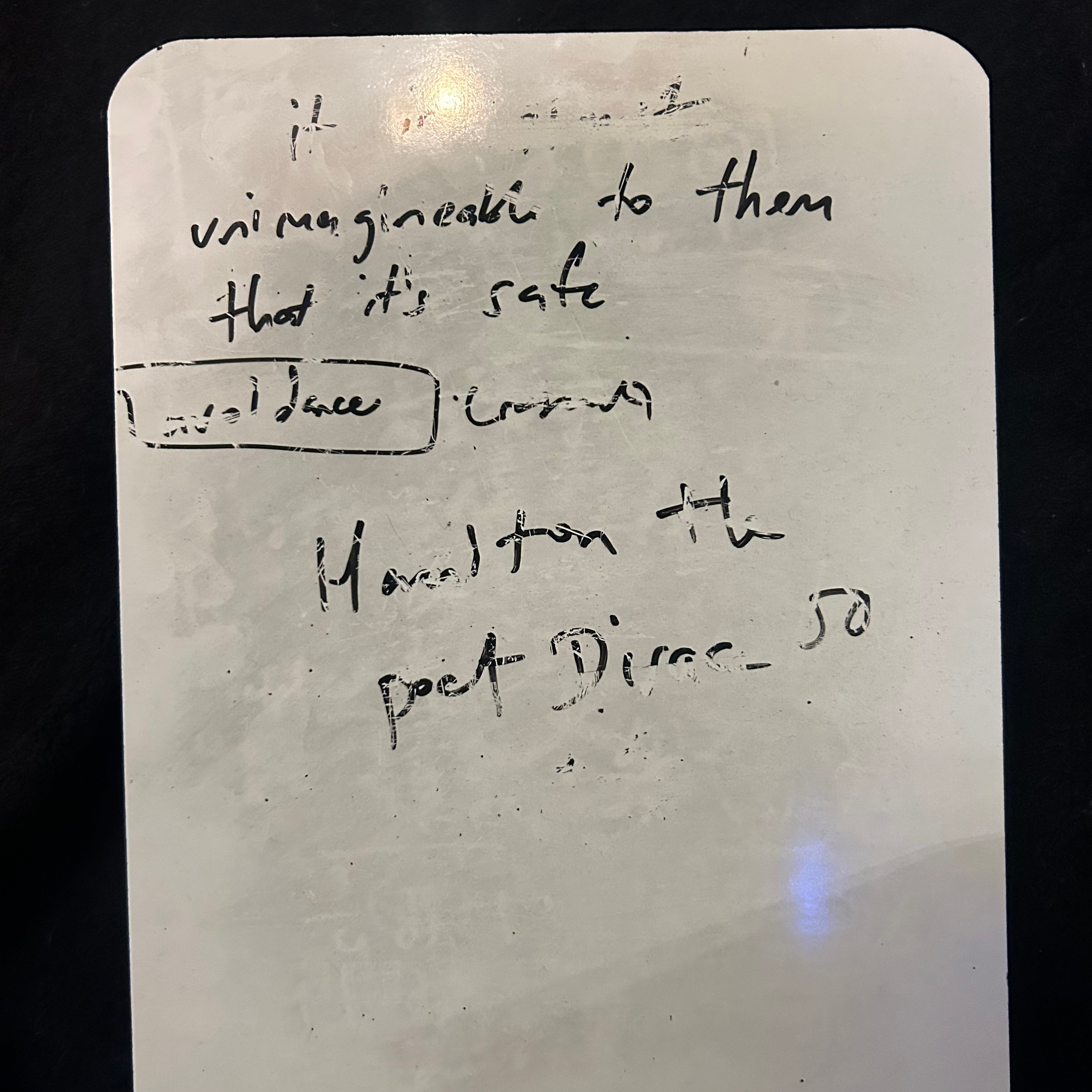 I came across a line in a biography of Paul Dirac. It went like this: “During his mathematics degree, Dirac encountered the ideas of William Hamilton, the nineteenth century Irish mathematician and amateur poet.” I underlined the sentence and went to bed. I woke up the next morning and could not get it out of my head that he called Hamilton an amateur poet. I thought about it for weeks. Then I wrote it on a whiteboard.
